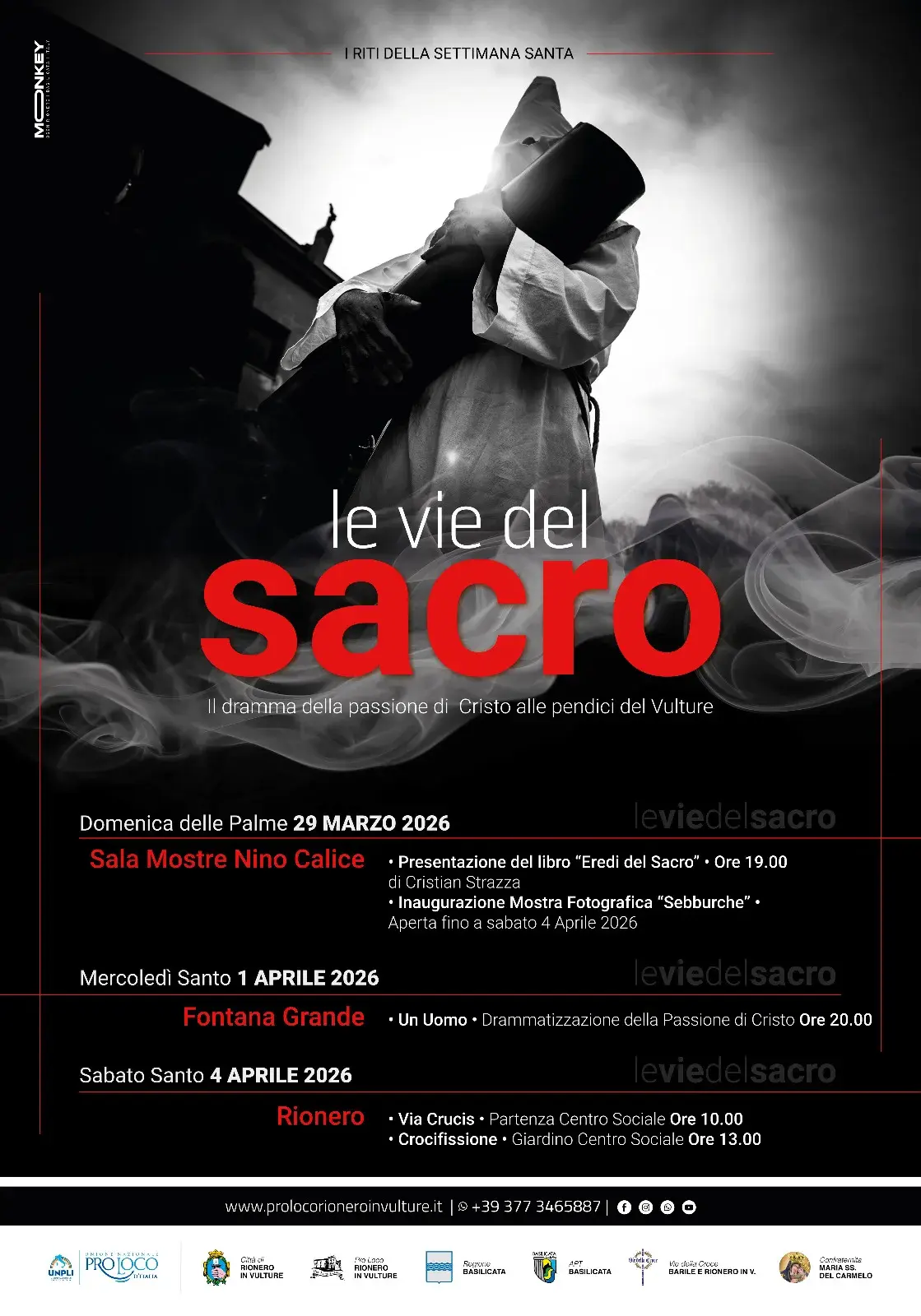La cittadina di Rionero in Vulture, incastonata nel suggestivo scenario del Monte Vulture, rinnova anche quest'anno il suo profondo legame con le celebrazioni pasquali attraverso l'iniziativa Le Vie della Croce. Il programma, curato dalla Pro Loco locale, propone una riflessione collettiva che unisce il rigore della spiritualità alla valorizzazione del patrimonio storico-culturale del territorio. Gli eventi si articolano in tre momenti fondamentali che permettono di esplorare le radici della memoria locale in luoghi simbolo della città. Il percorso di avvicinamento alla Pasqua prende avvio il 29 marzo presso la Sala Mostre Nino Calice, un punto di riferimento culturale intitolato alla memoria di una figura centrale per la divulgazione storica rionerese. In questa occasione sarà presentato il volume Eredi del Sacro di Cristian Strazza, un’opera che analizza l’evoluzione della secolare Via Crucis cittadina, accompagnata dall’inaugurazione della mostra fotografica intitolata Sebburche, esposta al pubblico fino al 4 aprile. La riflessione prosegue mercoledì 1 aprile presso la storica Fontana Grande, fulcro della vita pubblica cittadina, dove andrà in scena la drammatizzazione intitolata Un uomo. Questa rappresentazione teatrale, che rilegge i momenti della Passione, trasforma lo spazio urbano in un palcoscenico naturale capace di coinvolgere emotivamente il pubblico. Il momento di massima intensità devozionale è fissato per sabato 4 aprile, data in cui si svolgerà la tradizionale Via Crucis con personaggi viventi. Il corteo, curato con dedizione dalla Confraternita Maria SS. del Monte Carmelo, un'istituzione secolare che funge da custode della religiosità locale, partirà alle ore 10:00 dal Centro Sociale per snodarsi lungo le arterie cittadine, giungendo infine alla rappresentazione della Crocifissione presso il Giardino del Centro Sociale alle ore 13:00. Tale evento rappresenta una delle espressioni più autentiche della cultura rionerese, capace di tramandare di generazione in generazione gesti e canti che definiscono l'identità del borgo. La rassegna, che gode del prestigioso patrocinio del Comune di Rionero in Vulture, della Regione Basilicata e dell'APT, si conferma come un'importante occasione per riscoprire il significato profondo dei riti quaresimali. La partecipazione attiva della cittadinanza e la cura nei dettagli organizzativi rendono questo appuntamento un pilastro fondamentale nel calendario annuale degli eventi lucani, offrendo ai visitatori la possibilità di immergersi in una dimensione in cui il sacro e il profano convivono armoniosamente nel cuore del Vulture.